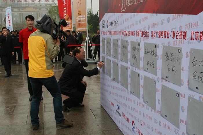 凤凰卫视 主持人许戈辉现身盐城新四军纪念馆,主持大型文献纪录片《铁军1941》开机仪式。中国文联副主席、中国电视艺术家协会主席赵化勇出席开机仪式。本次活动的音响设备由盐城市快乐音响公司全权赞助!