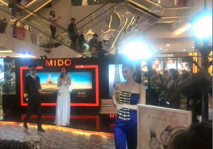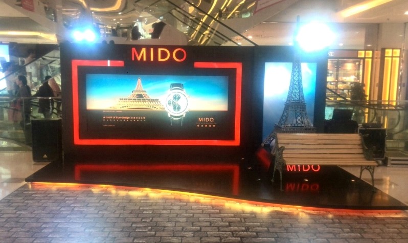 2014年5月10日至2014年5月16号 盐城金鹰购物中心1F盛时表行进行了7天的MIDO瑞士表促销展示活动,为了达到很好的现场渲染效果,快乐音响有限公司为其提供了专业的音响设备和专业人员进行设备安装、调试。