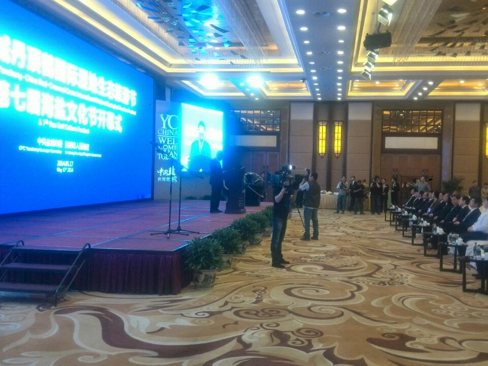 2014年5月17日下午5点半,中国盐城丹顶鹤国际湿地生态旅游节暨第七届海盐文化节开幕式在盐城迎宾馆迎宾厅举行。