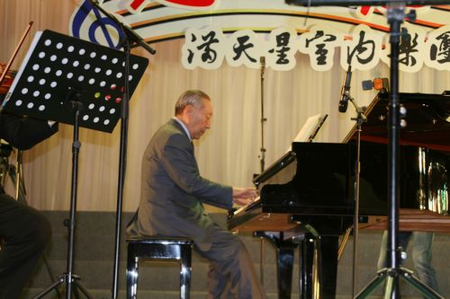 在音乐会上,李岚清同志还登台用流畅的钢琴音符演奏了钢琴曲《送别》,用浑厚的男中音演唱了《教我如何不想他》,乐团还演绎了李岚清同志的音乐作品《鉴真东渡》和为盐城海水淡化工程而专门作词的歌曲《大丰的海》,这位慈祥的“80后”老人用言传身教诠释他一直秉承的“使中国音乐化”的理念。